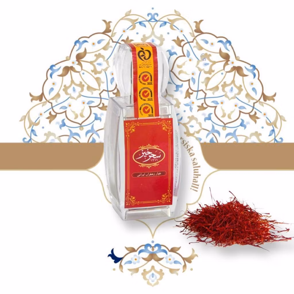 Saharkhiz med över 85 års erfarenhet är en av världens mest kända leverantörer av saffran i från Iran. Utmärkande för Saharkhiz är att man enbart använder toppen av pistillen. På så säkerhetsställs saffranets goda kvalitet. Saffranet levereras i elegant förpackning, perfekt för att ge bort som present.