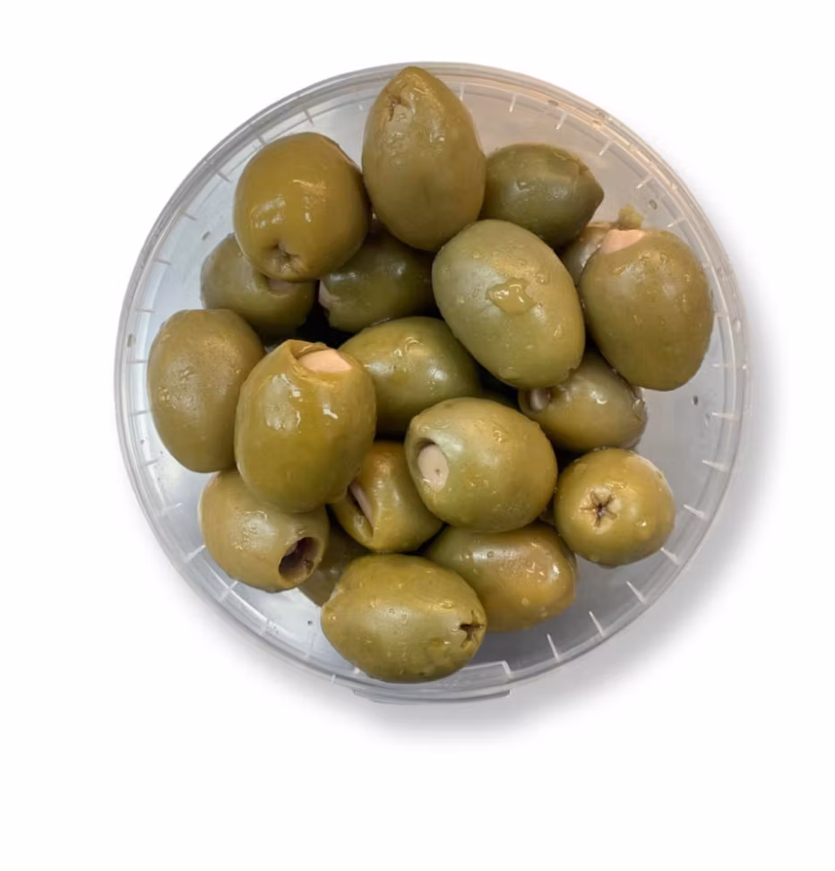 Stora gröna oliver med mandel 79 kr Produkten är tyvärr slut i lager. :( Stora gröna oliver av sorten Halkidiki, med mandelInnehåller : Gröna oliver, vatten, vinäger, mandel, raffinerat salt, max: 4%.Hemkörning Stockholm = JaKan inte skickas med Posten = Ja