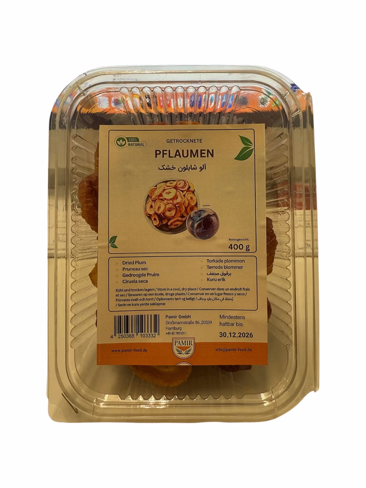 Torkad Skivad Plommon - Pamir I lager. Antal: 24 89 kr LÄGG I KORGEN Torkade söta gyllene plommon är bra för matlagning och mellanmål. Dessa plommon är ett måste för en välsmakande rätt. 🚚 = Hemkörning Stockholm ✅📦 = Kan även skickas med Posten ✅Innehåller : Torkade plommonVikt: 400 gramUrsprung: Iran